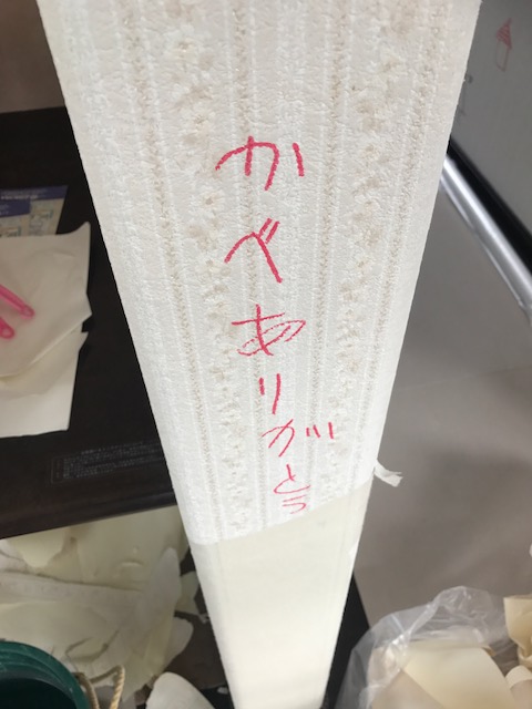 寝室には今までの壁紙に感謝の言葉が書かれていました(^^)