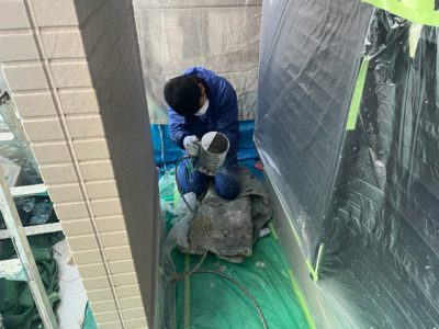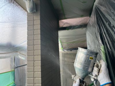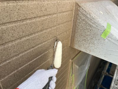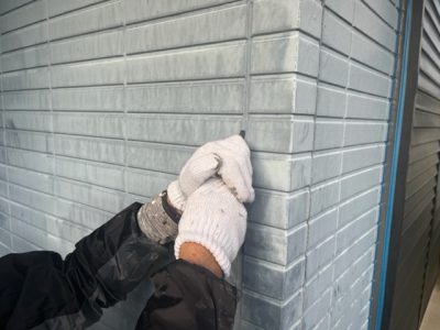 現地調査時での建物の状況は前回の塗膜がチョーキングしており、塗膜劣化が確認できました。